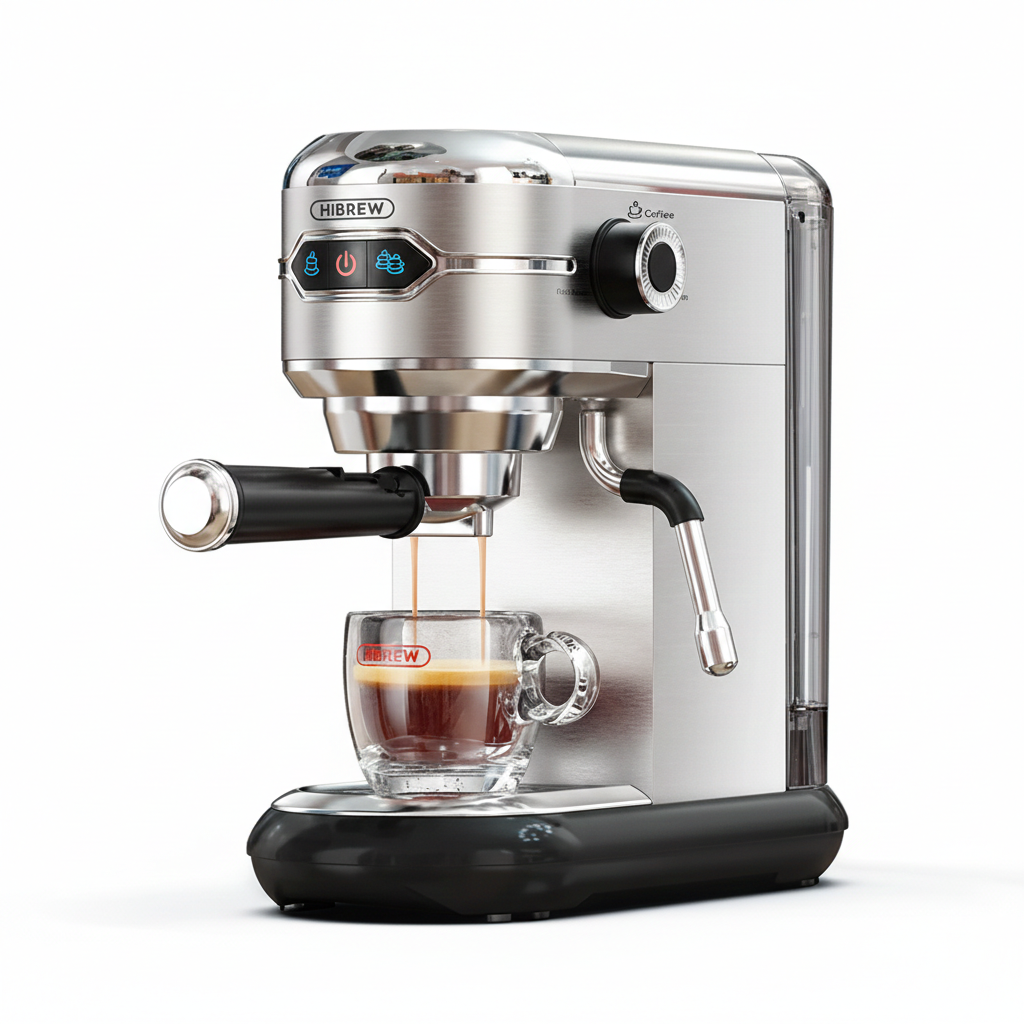 ماكينة قهوة إسبريسو نصف أوتوماتيكية بضغط 20 بار وهيكل ستانلس ستيل لتحضير قهوة غنية وكريمية